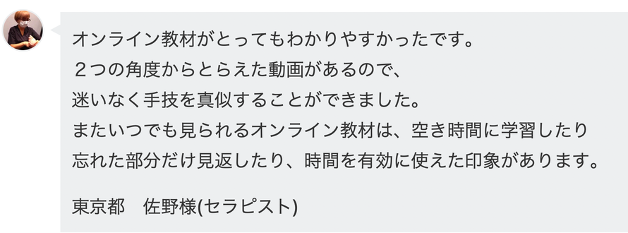 テキストだけでは分からない、指の動きや、圧のかけ方、スピードなどを、至近距離からの撮影による映像から学んでいただけます。